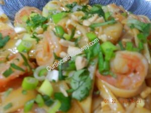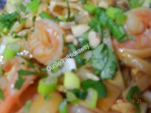 Mmmmm topped with cilantro, chopped peanuts, green onions and lime wedge on the side.