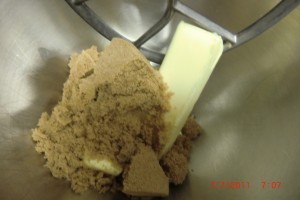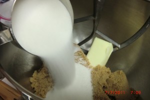 .adding the regular sugar to the brown sugar and buttah………..
