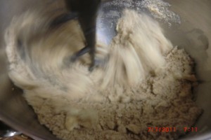 now add the dry “stuff” to the wet “stuff”…….