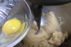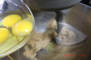now add the eggs……. one at a time…….