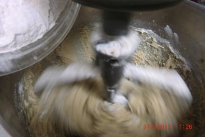 When it gets thick and the mixer sounds like it is going to die….. Stop it and take it off. Continue to mix by hand. If your mixer is a very strong one… continue