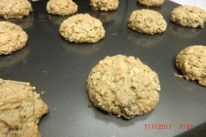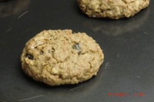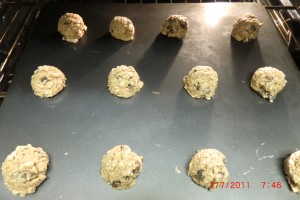 Now use a scoop or spoon and place them on a cookie sheet to bake. You can use your hand to smash them a little IF IT SEEMS LIKE A THICK DOUGH.