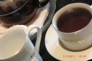 Tea is nice and hot, help yourself to the sugar, cream, or lemon.