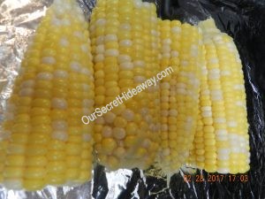 Corn out of the freezer. I still have about 10 bags of 2-6 ears. Doesn’t matter, the corn in this city is TERRIBLE.