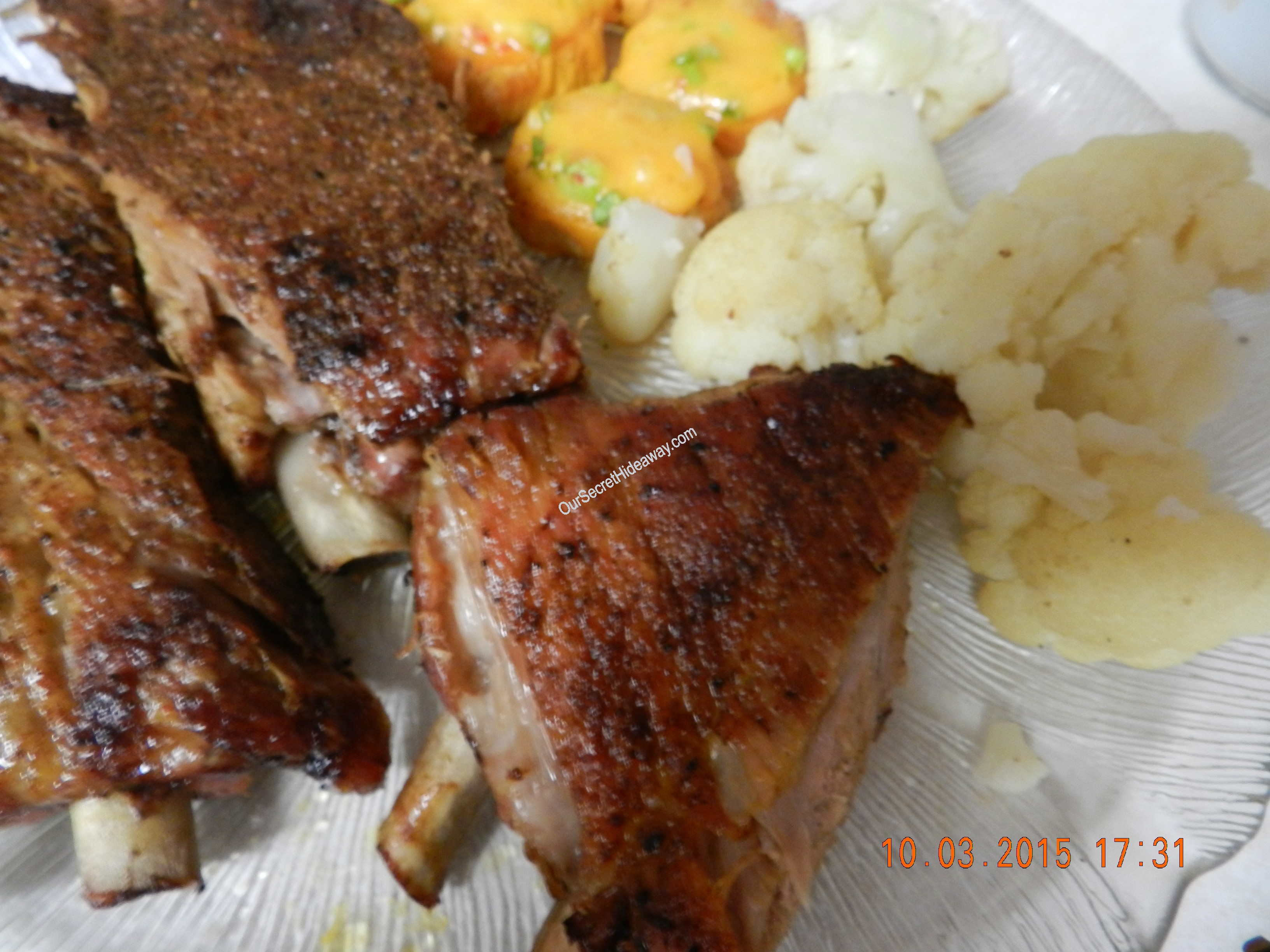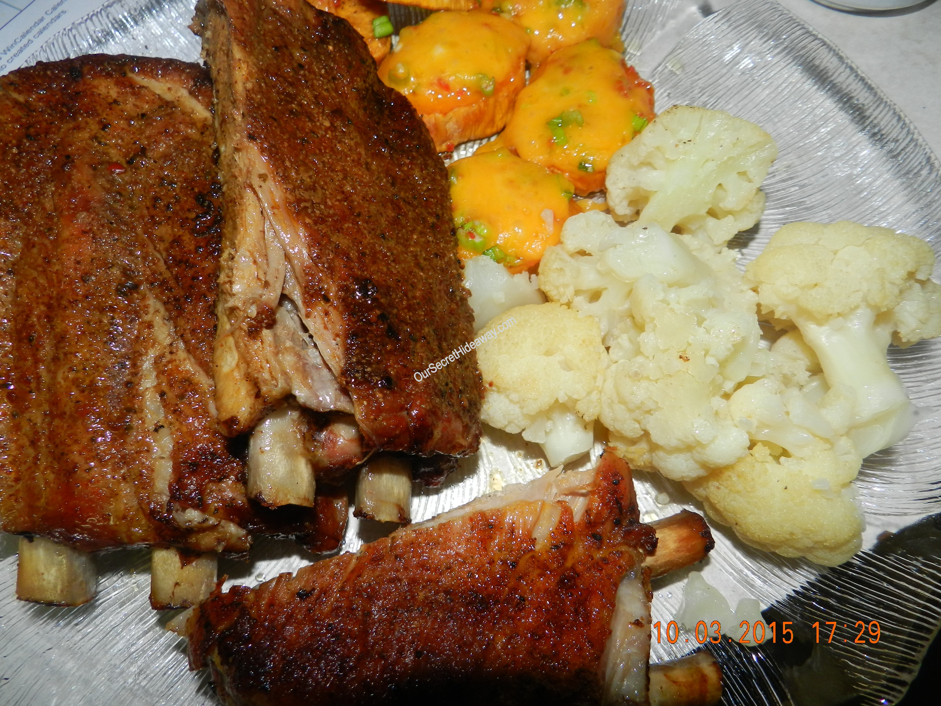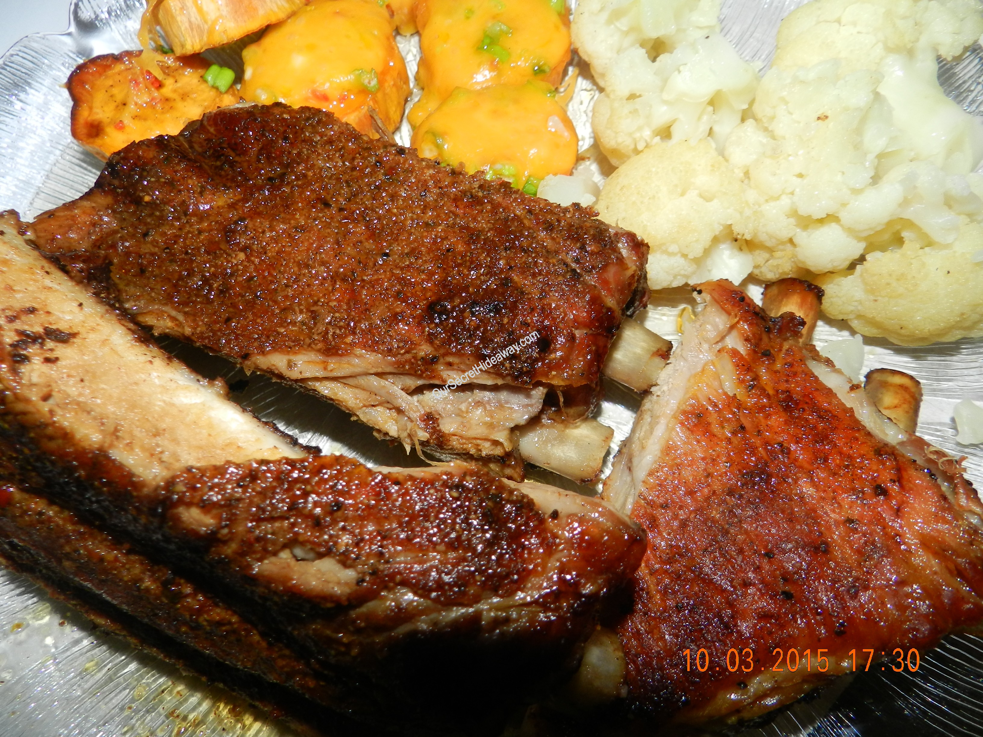 Baby Back Ribs, loaded sweet potato slices, and cauliflower . Dinner is ready !