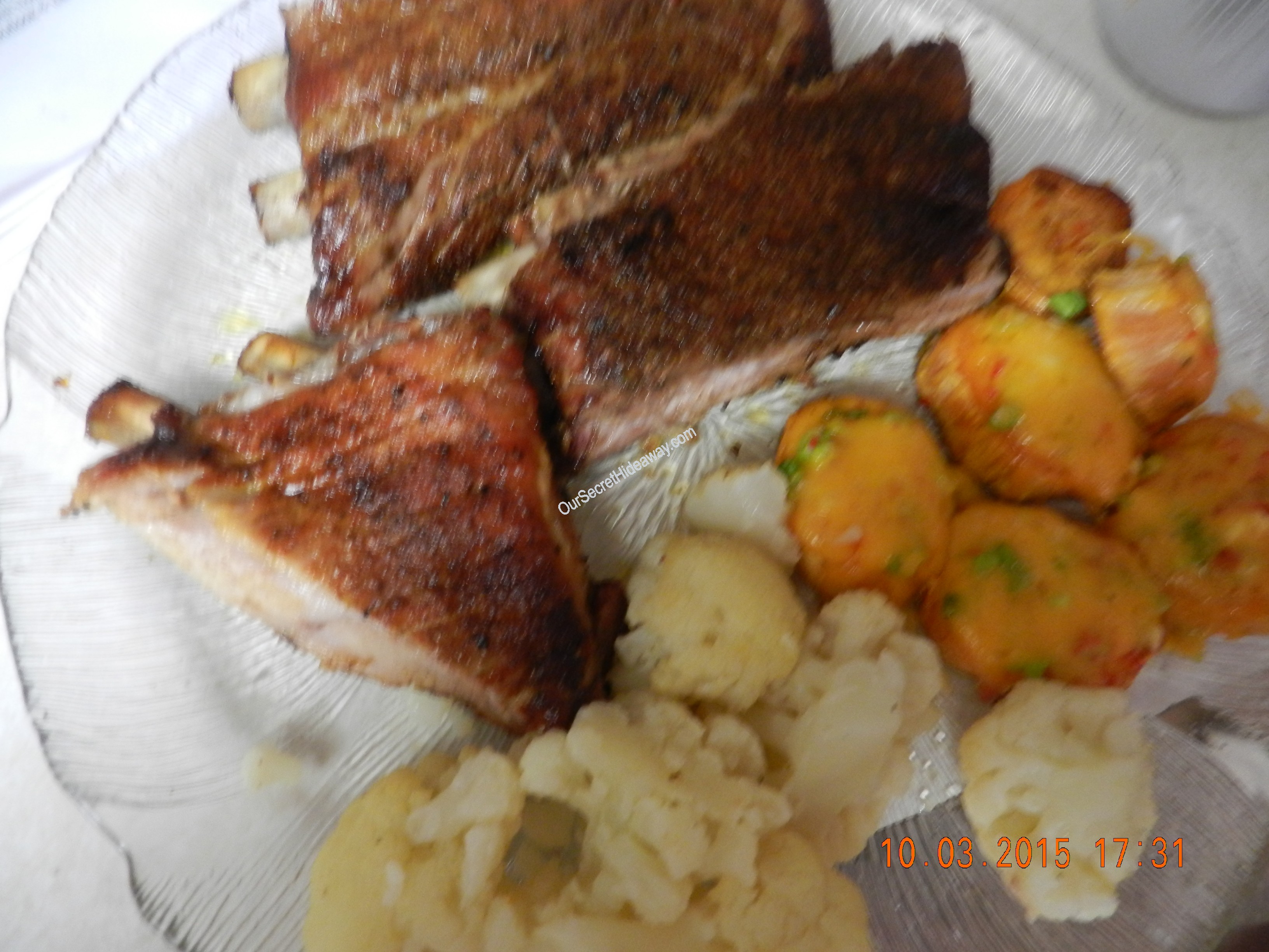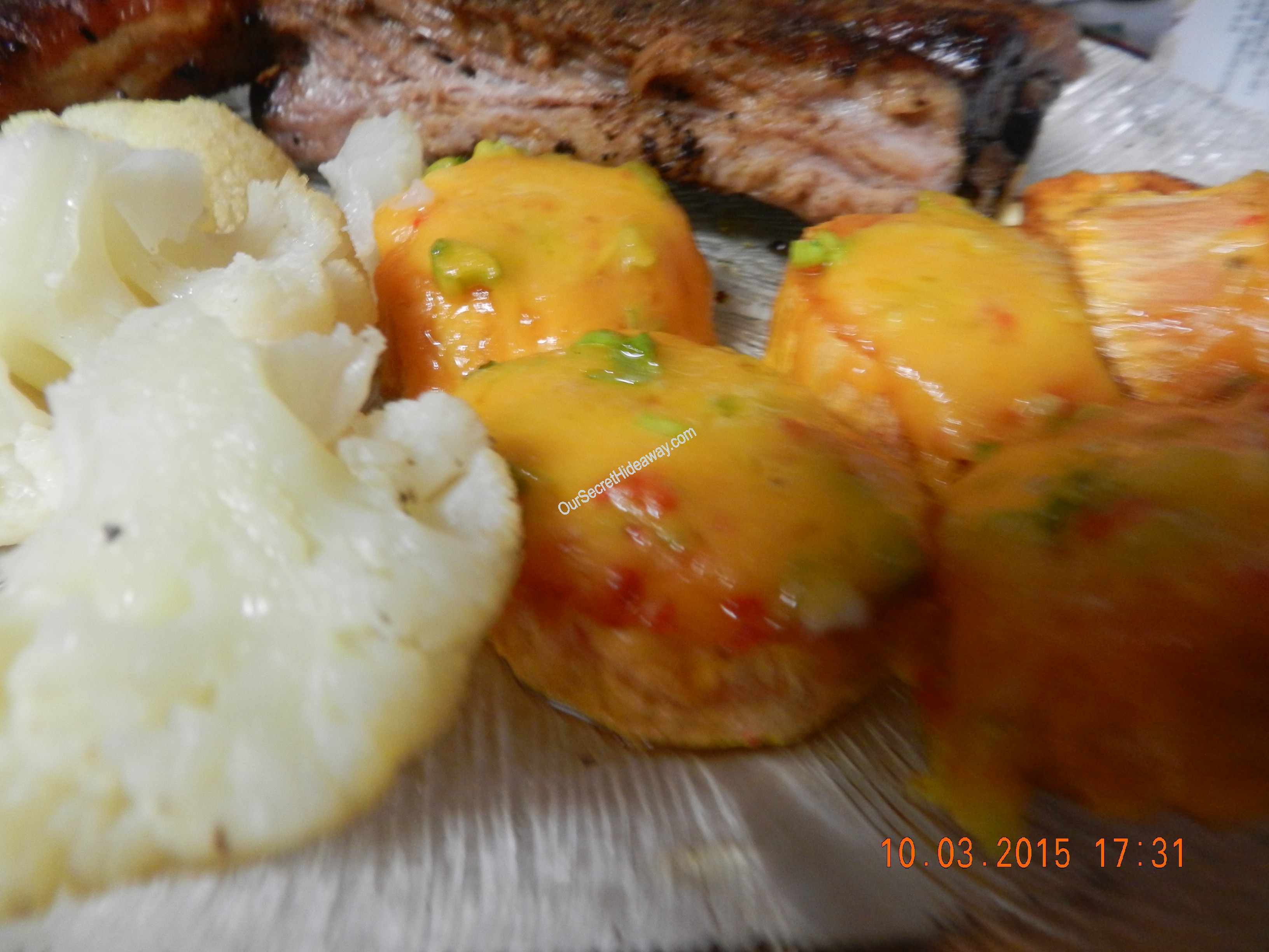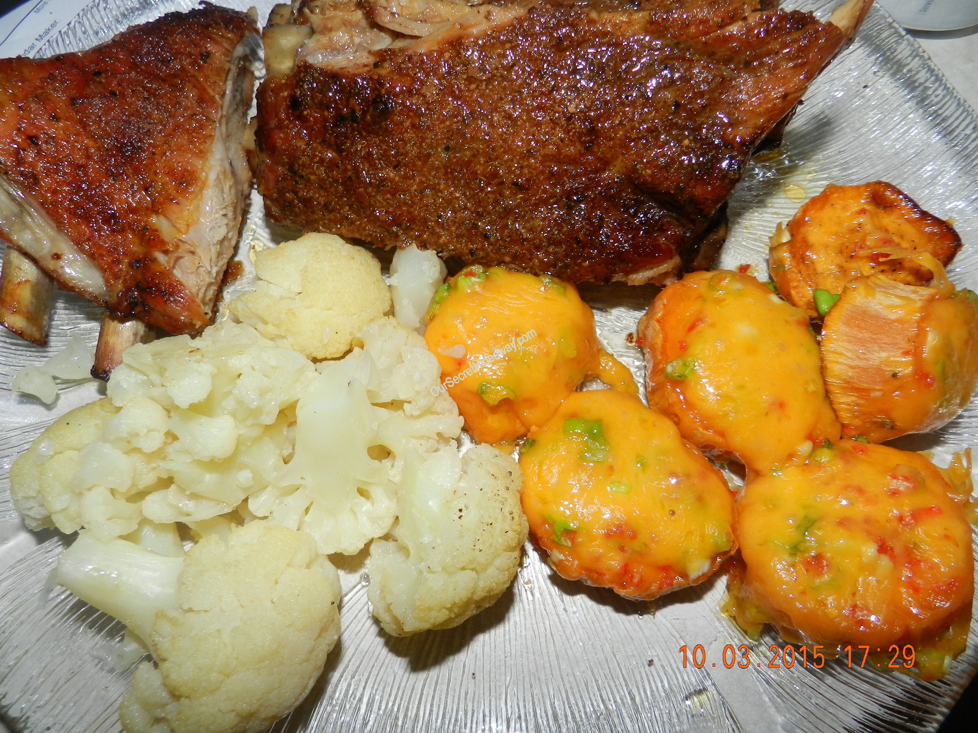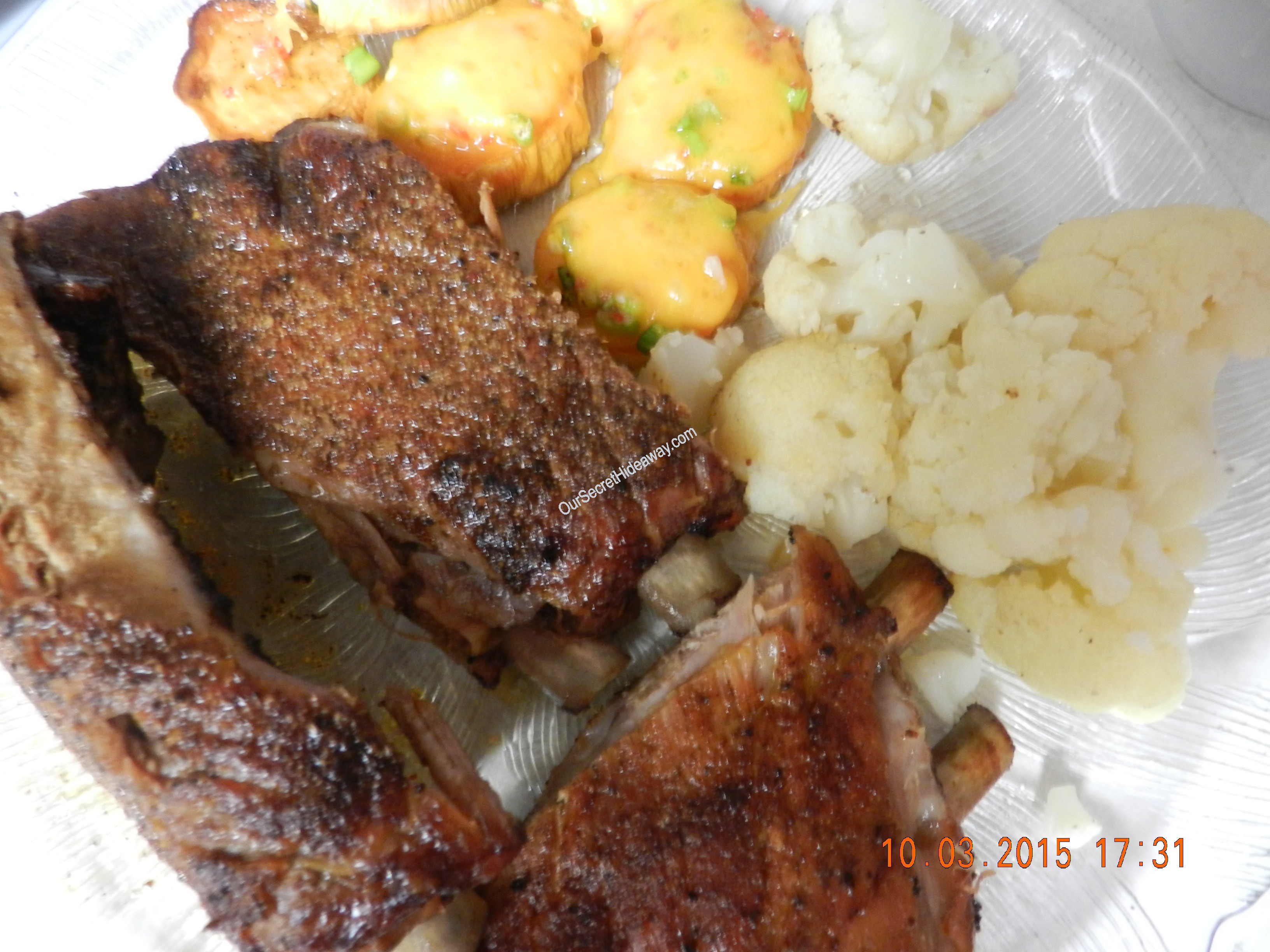 Baby Back Ribs, loaded sweet potato slices, and cauliflower . Dinner is ready !