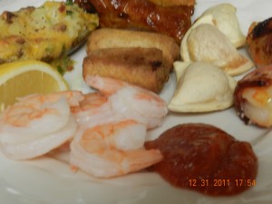 These shrimp disappeared fast. I didn’t get very many photos. The first picture is them on the warming tray. The next picture you have to look close,they are on the right side of the plate.