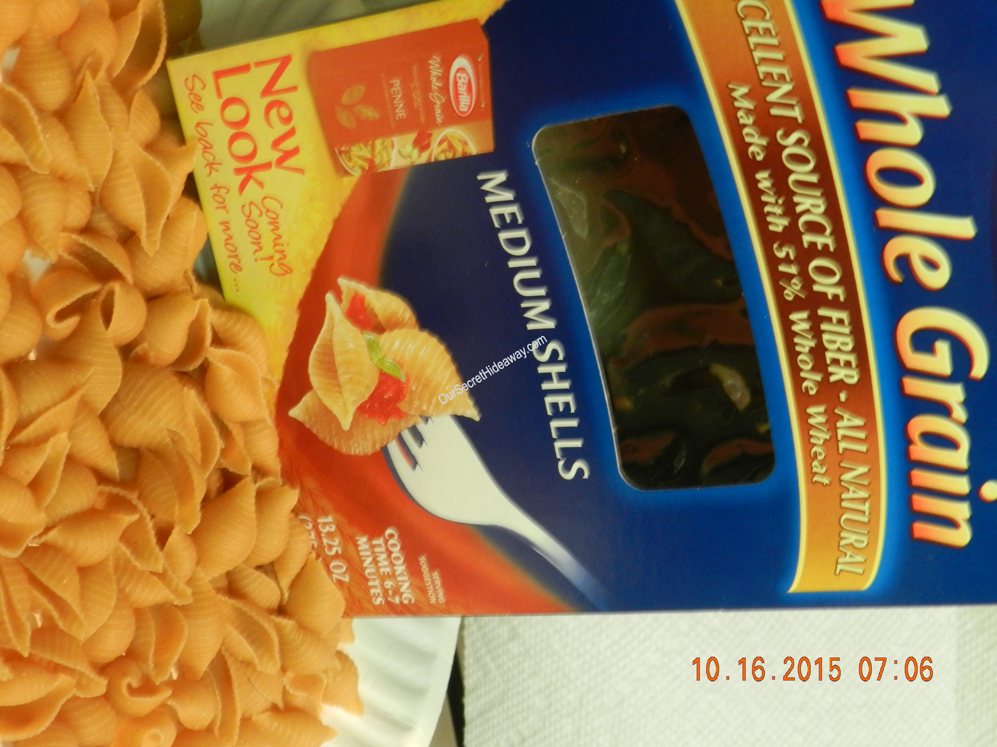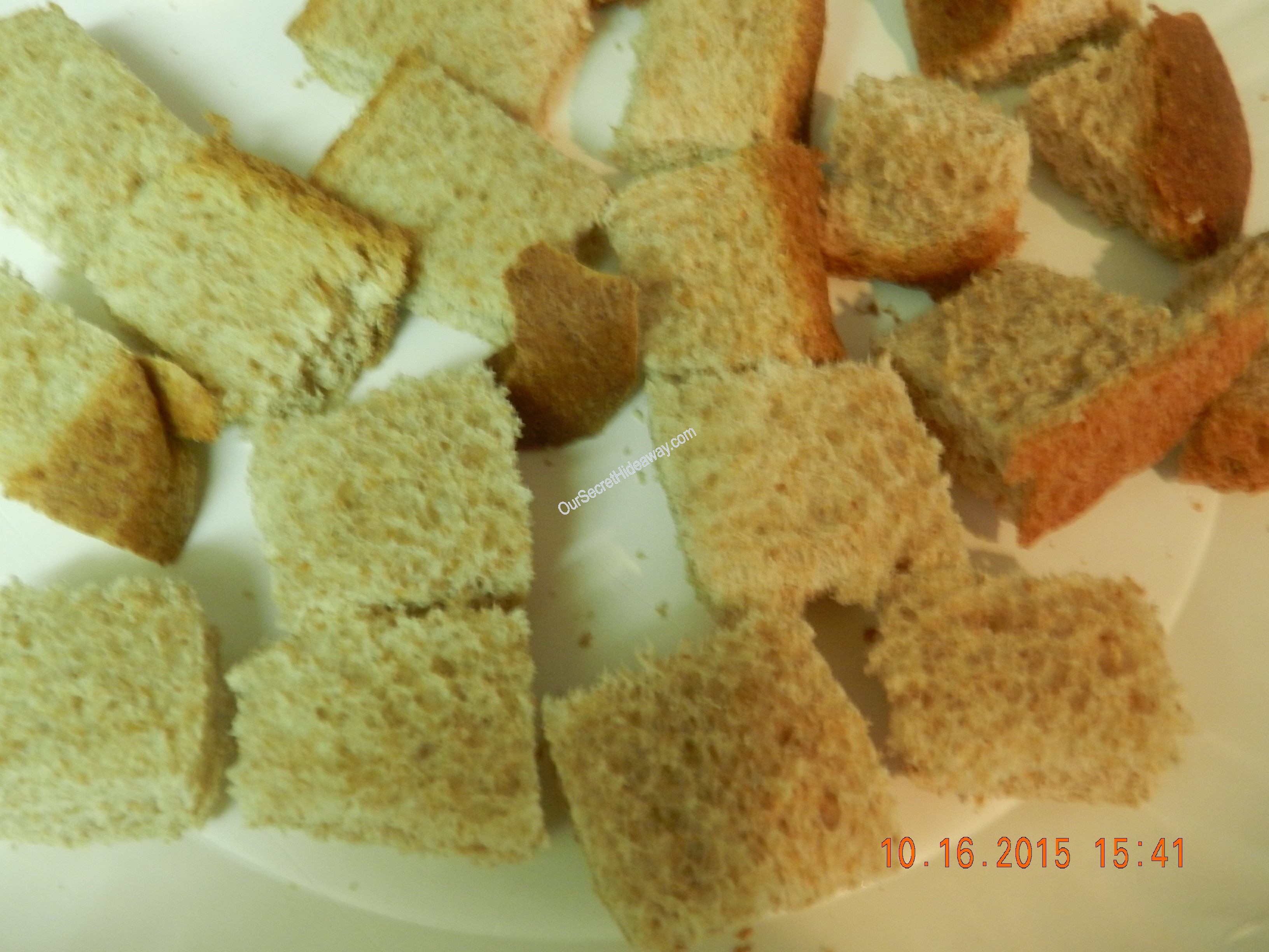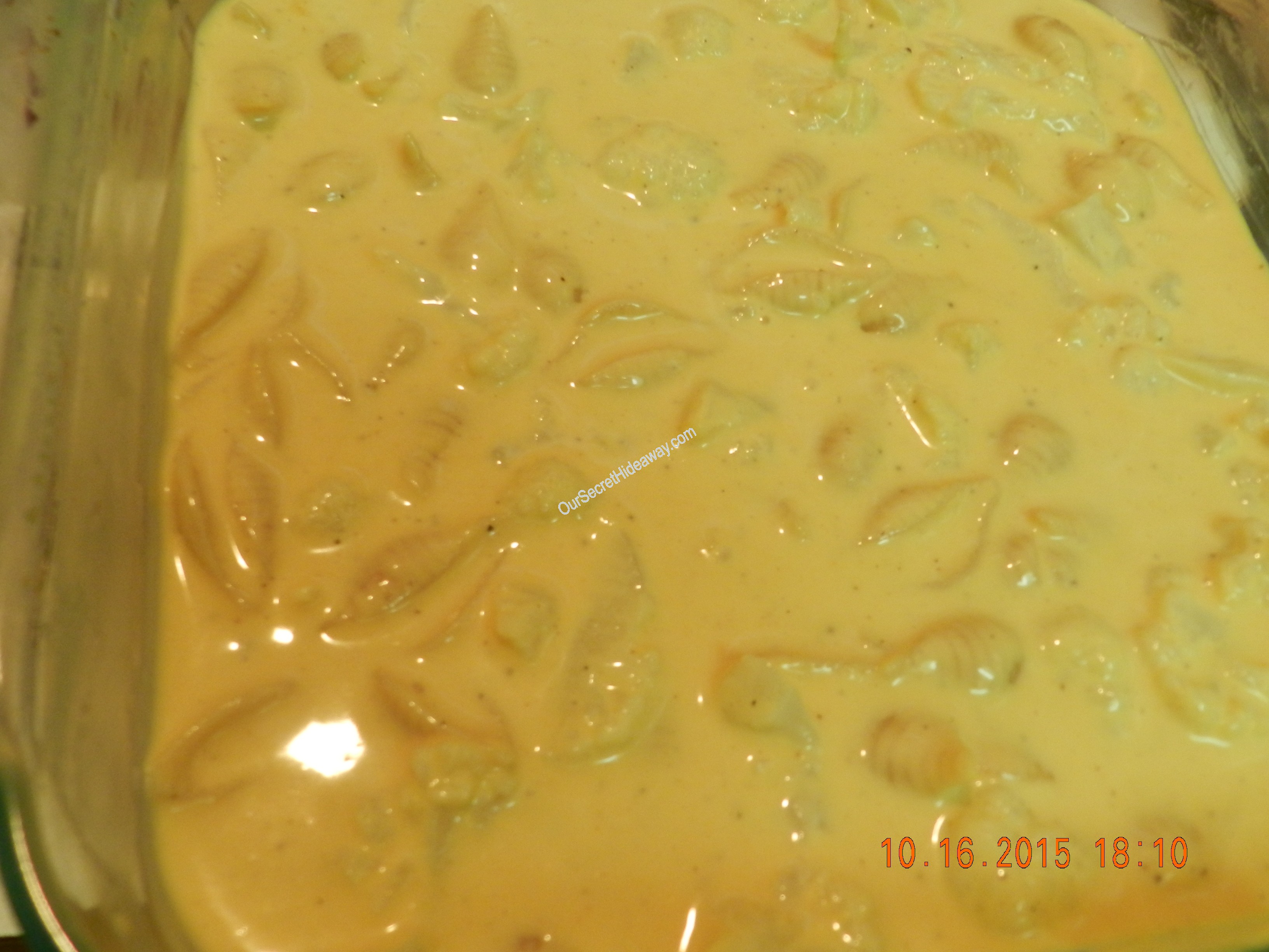 Whole grain pasta with homemade sauce, baked in the oven topped with one slice of cubed whole wheat bread. Nice and creamy.