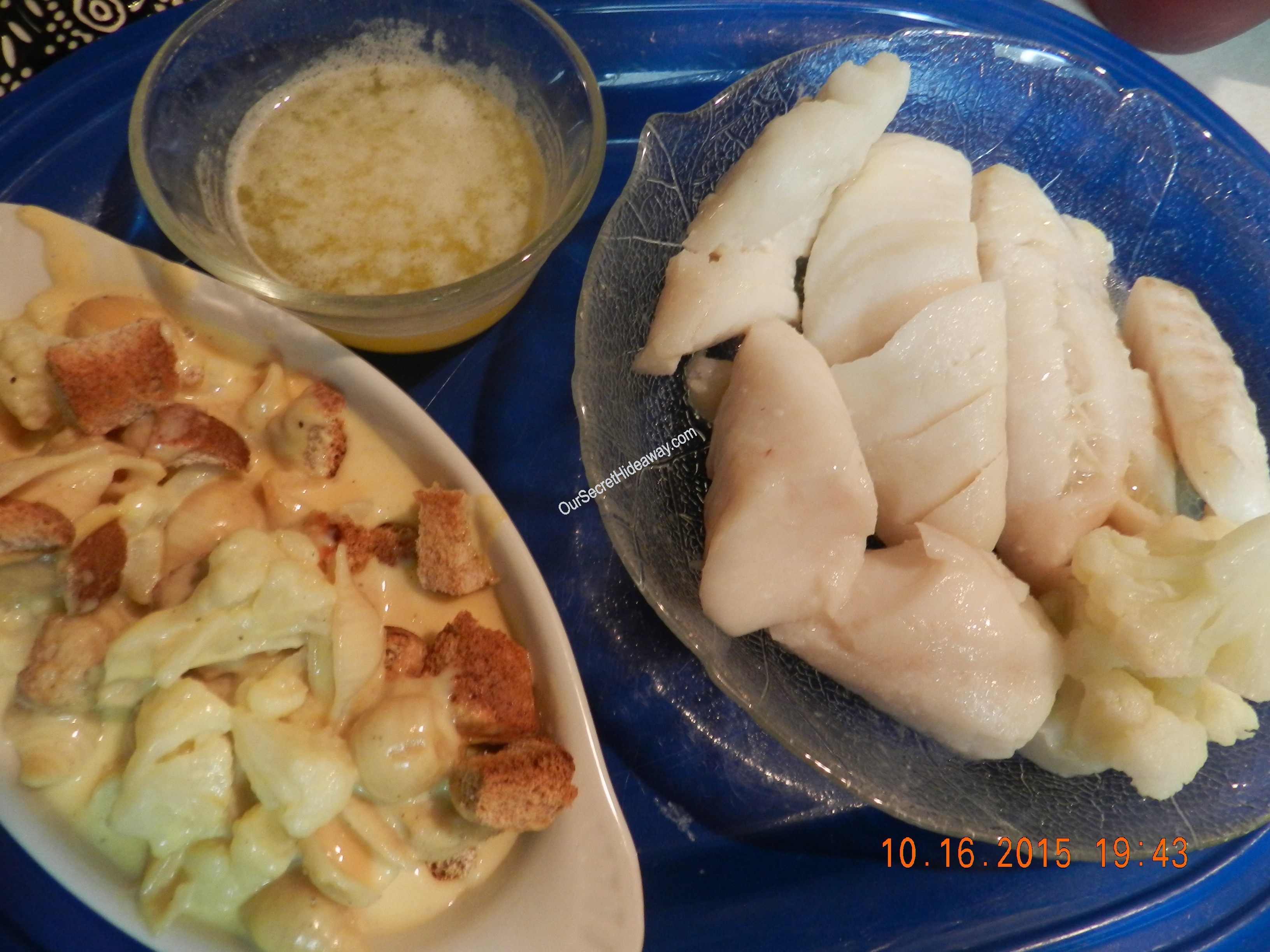 This fish was so tender and flakey. Nice warm butter to dip… Mmmmm