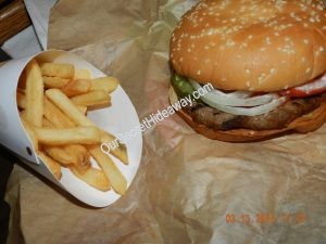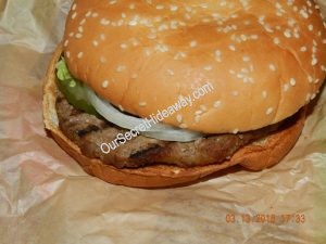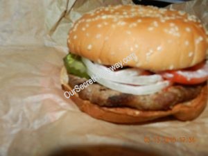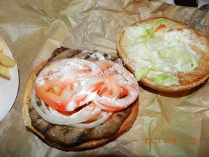 She said the bun was so hard it was crunchy. She took the patty and toppings and ate it with a knife and fork.
