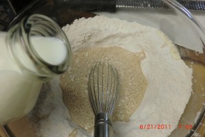 Add the egg and milk………we are almost there…..