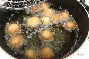 Oh boy….. drain them on paper towel. Roll in sugar and cinnamon if you like. I make plain and sugar.