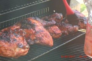 Photo above is my homemade BBQ sauce, you can tell because it is in a Pyrex measuring cup. I also make my own rubs, but you know that don’t you?