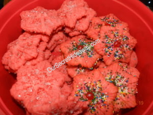 This has been an EVERY year cookie for many years. I like to let all the little ones decorate these and even use the cookie press. They get to take them all home when they are done. this has been done for about 40 years or so.