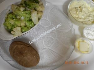 (potatoes were cooked out on the deck in the bbq grill because ovens were full)