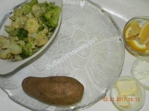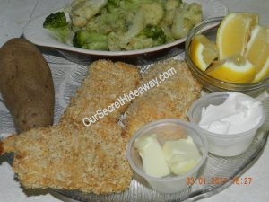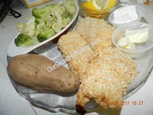 The naked fish and sweet potato were in the other oven, I swear that I got a picture but I can’t find it. Doesn’t really surprise me since I can’t find my coffee cup and glasses most of the time.