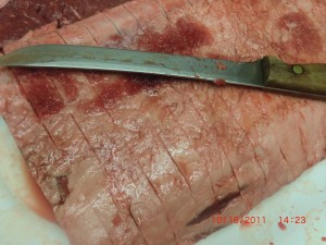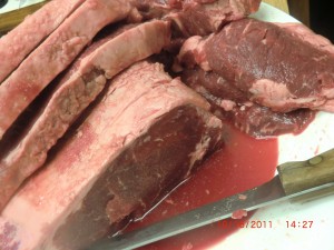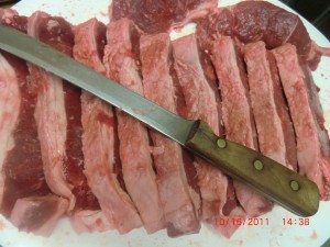 I think that knife is older than I am. It wa first my mothers and her fathers before her. It does a great job cutting all these larger pieces of meat.