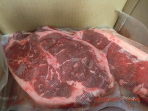 Here they are all sealed in with the FoodSaver. I put all of them in a box that has been labled. I made bags with One steak, some with Two, some Three etc etc.
