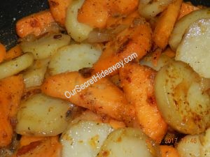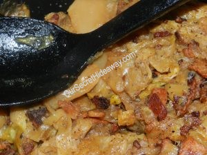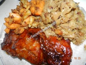 Fried cabbage is ready. Now time to glaze the steaks and call them for dinner.