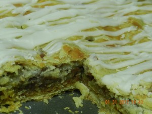 Ok, time for dinner. Turn it over on the plate, serve with a green salad ,and “Apple Bars” for dessert.