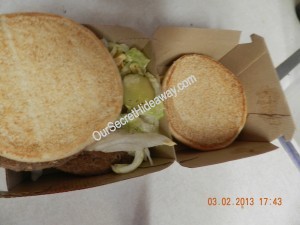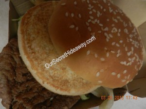 Here let me put the burger together for you……. wow that was tough. ( I can say that KNOWING how easy it is.)