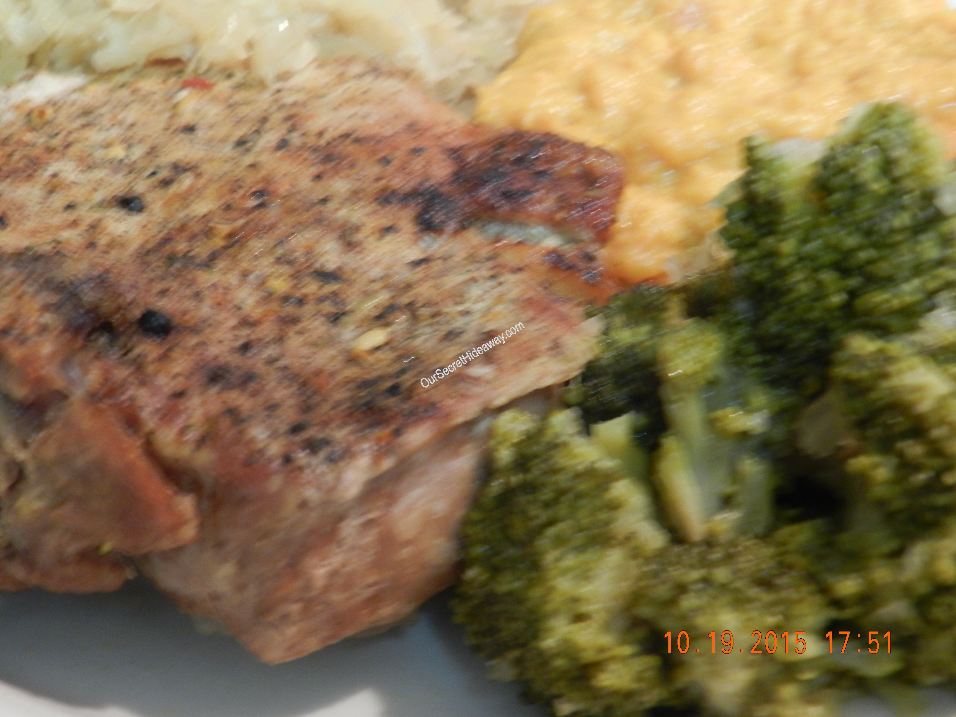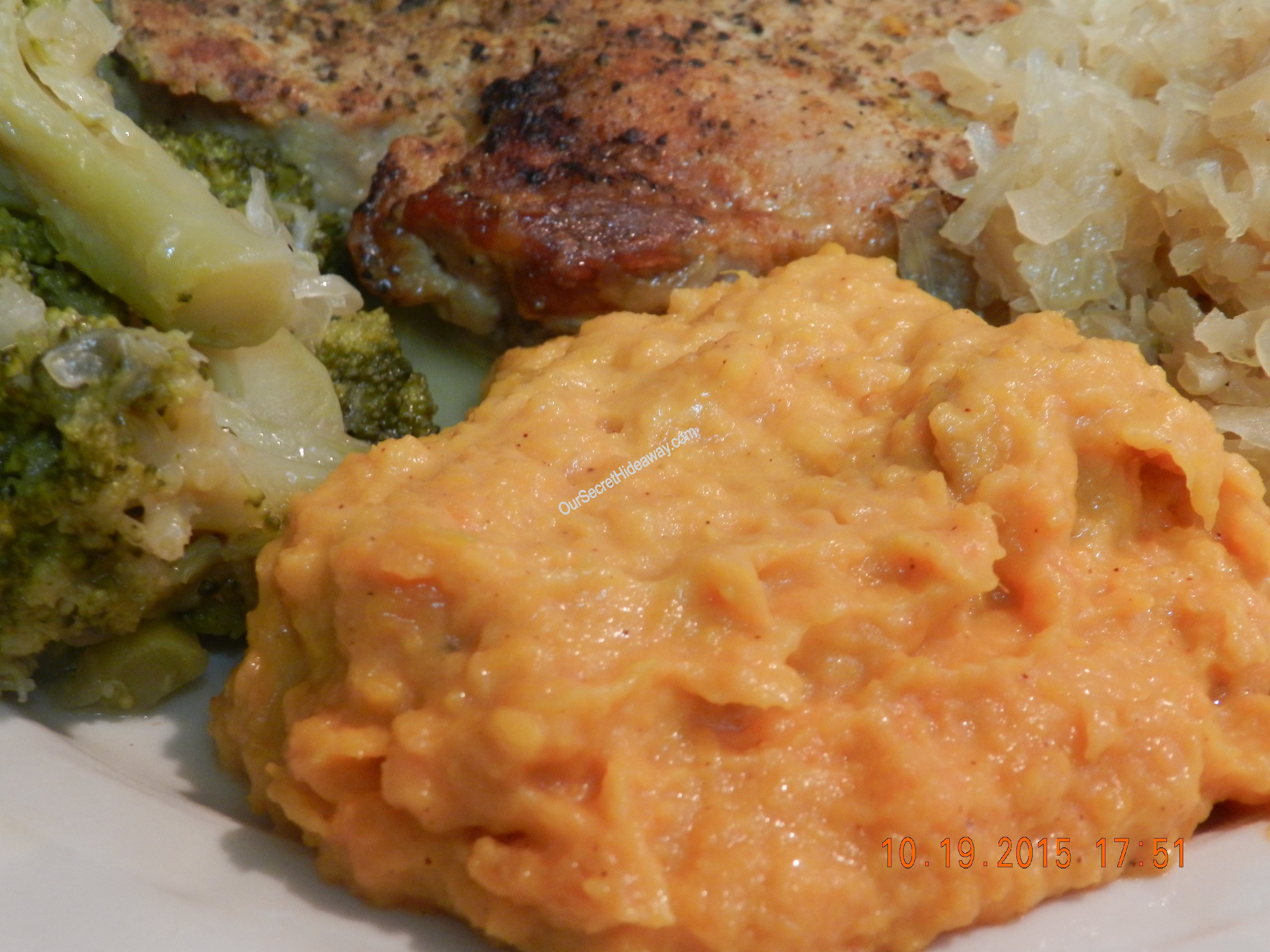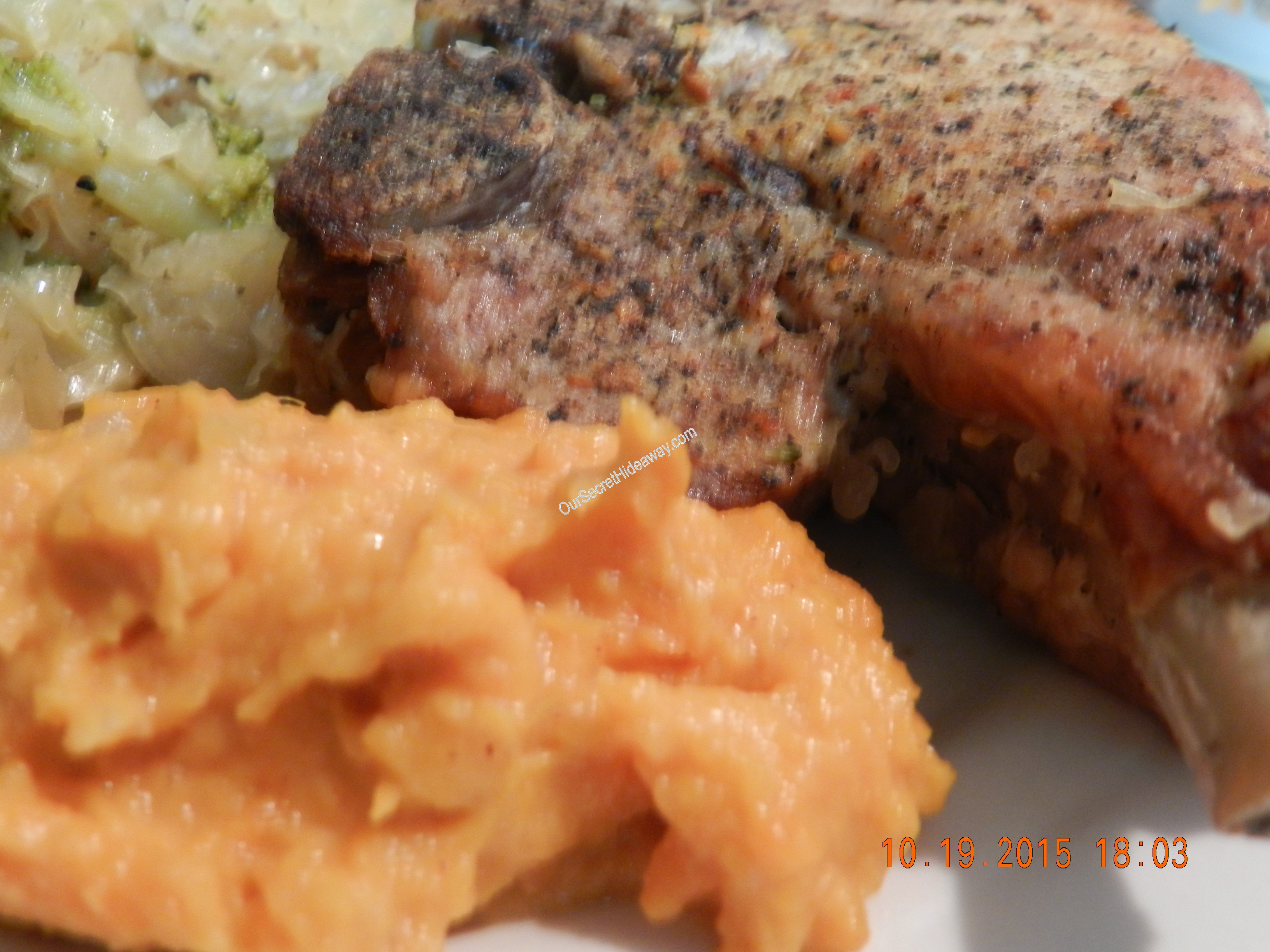 Served with a mashed sweet potato with butter and heavy cream. ( and a loss next morning). Oh and Lower carb strawberry shortcake with whipped cream.