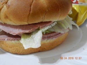 This sandwich is on a roll with lettuce and it was not good but it took care of the craving i had, plus I am so busy today.