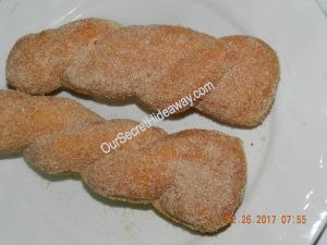 He bought the two “Bavarian cream” for me, and boy did I scream at him. When he walked out the door I said these words ” Please honey, don’t bring anything home for me”. And he did anyway. Yes, it shows that he is always thinking about me but please don’t do my hips any favors, they don’t need any extra “help”. ( sigh). But you know what? I would probably complain if he never thought about me (smile)