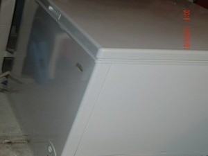 “He” insisted that I needed another one so he came home with it on Friday. I have an industrial size freezer in garage outside the kitchen door. It is out there with a side by side fridge. Now I have this new freezer out there too. But it is only until we push out the wall in utility room and then all the freezers etc will be inside off the kitchen . Any way…..here is my new freezer. She is small but she ‘s cute isn’t she? See ?