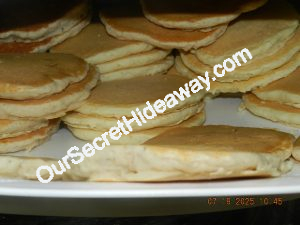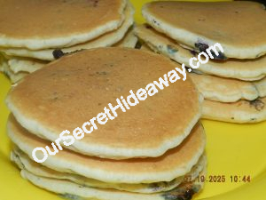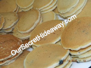 Pancakes for the freezer. We have Blueberry, Banana-Nut and Plain.