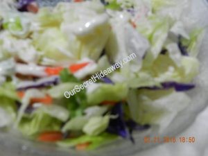 A cold tossed salad with homemade salad dressing for some and a vinaigrette for others.