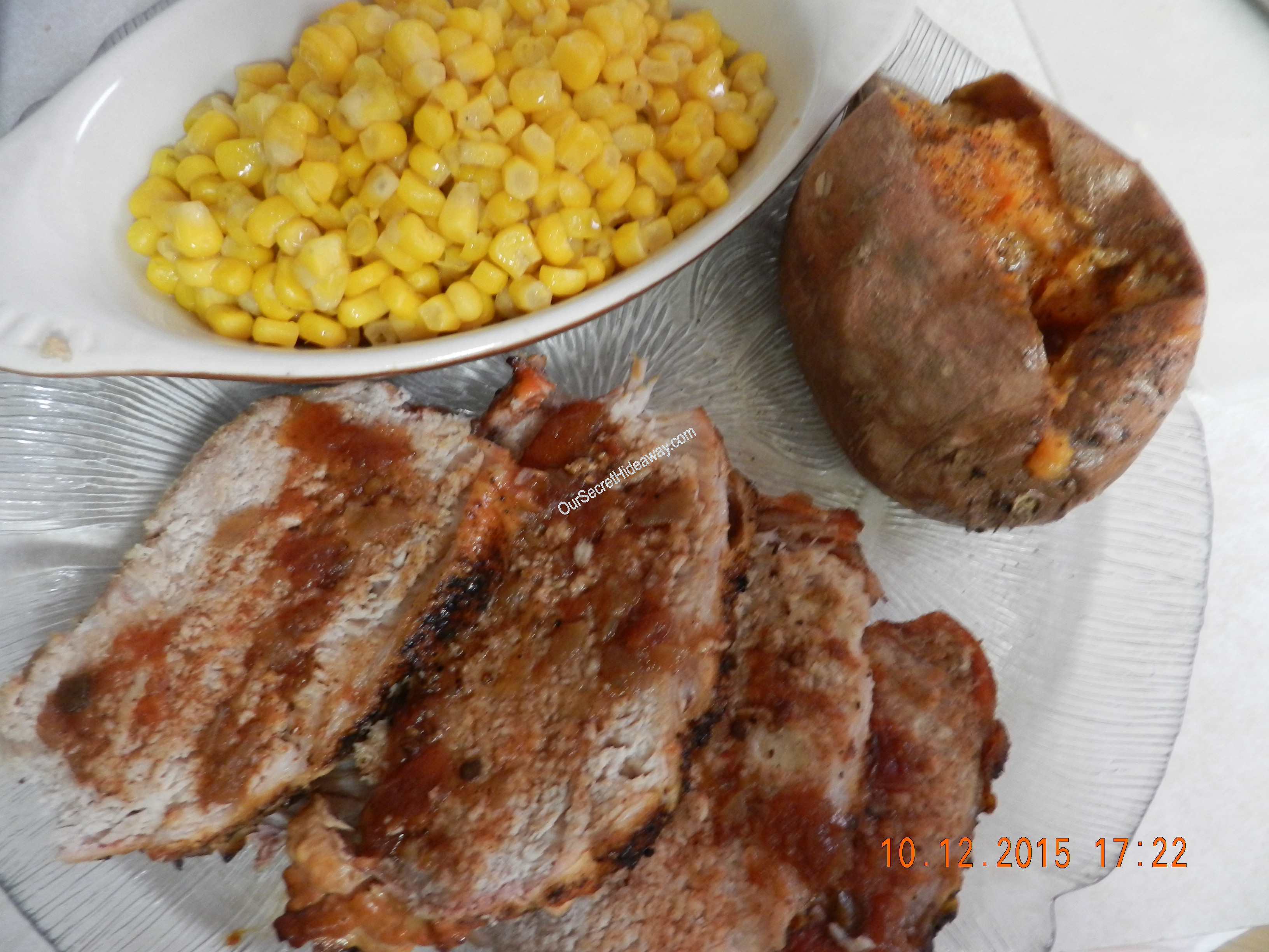 Pork Roast with sugar free glaze, baked tater and corn. Served with a tossed salad and we will call it dinner.