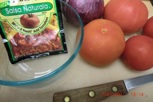 Now add an envelope of McCormick salsa mix. I know, I know, it only calls for 2 med tomatoes, why am I adding other things. I have said it a million times…. I’m a rebel ! I have NEVER been able to follow one single recipe unless it was perfect or from my family. There are even times I change them anyway. See, side tracked again, back to the sauce..