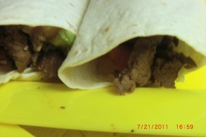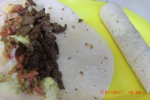 Now roll this up like a burrito or fajita. and serve with toritta chip and my weird sauce.