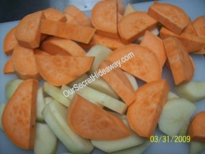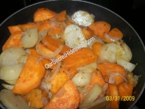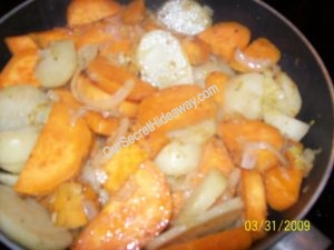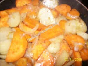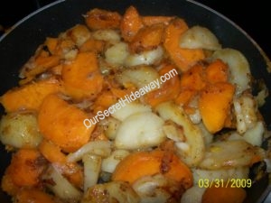 Regular and Sweet Fried Potatoes with Onions
