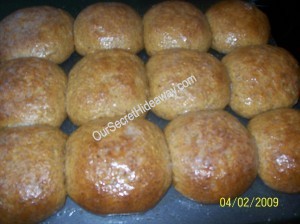 - Place 1 inch apart on greased baking sheets; let rise until double in bulk, about 1 hour.