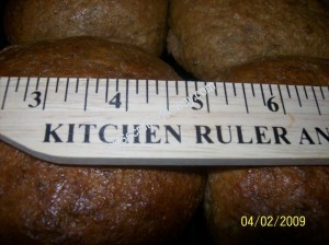 I tried using different things to show how big they ended up to be. This is my kitchen measuring thingy (just another technical term). Yes, I could have said “Ruler” but this thing does so much more than measure.