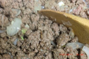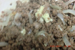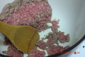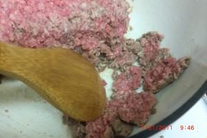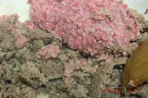 Let us start with about 2 pounds of ground beef that has been “defrosted”… Oops…I knew I forgot something. I was so busy with the puppy that I forgot.