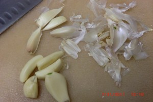 Let’s add about 2 large cloves of garlic or 4-5 small ones like mine. I was given about 12 heads of garlic so I don’t have to worry about vampires for a few weeks. *smile*