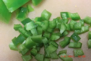 Add about one large green pepper chopped