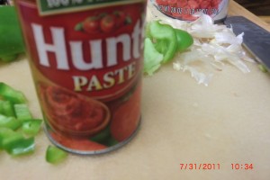 The tomato paste is next. This is one of the tiny cans of paste. I normally double or triple my recipe but today I didn’t.