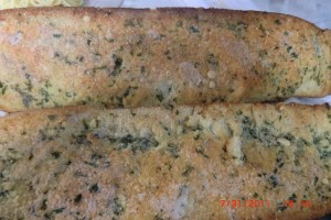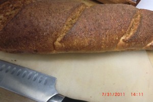 Bread is seasoned and baked. Now to slice it and serve dinner.