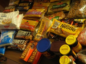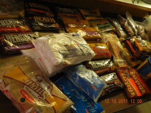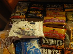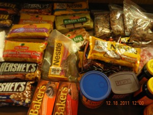 Here are some of the ingredients for the goodies. My good friend sent me 6 bags of baking supplies. She was moving and didn’t want to bother packing these up because her family gave up sweets. *gasp* what?