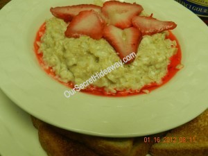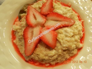 Old fashioned Oatmeal flavored with DaVinci’s Sugar Free Strawberry Syrup,