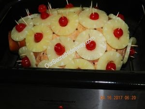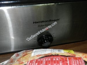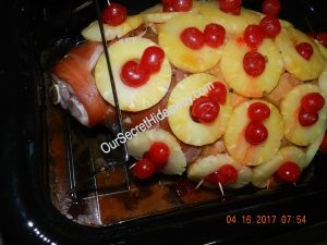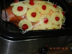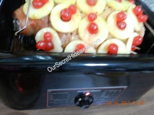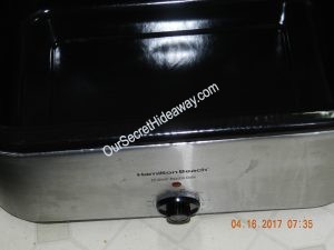 Now lets lift the ham from the 22Qt to the 18qt and HOPE it fits.